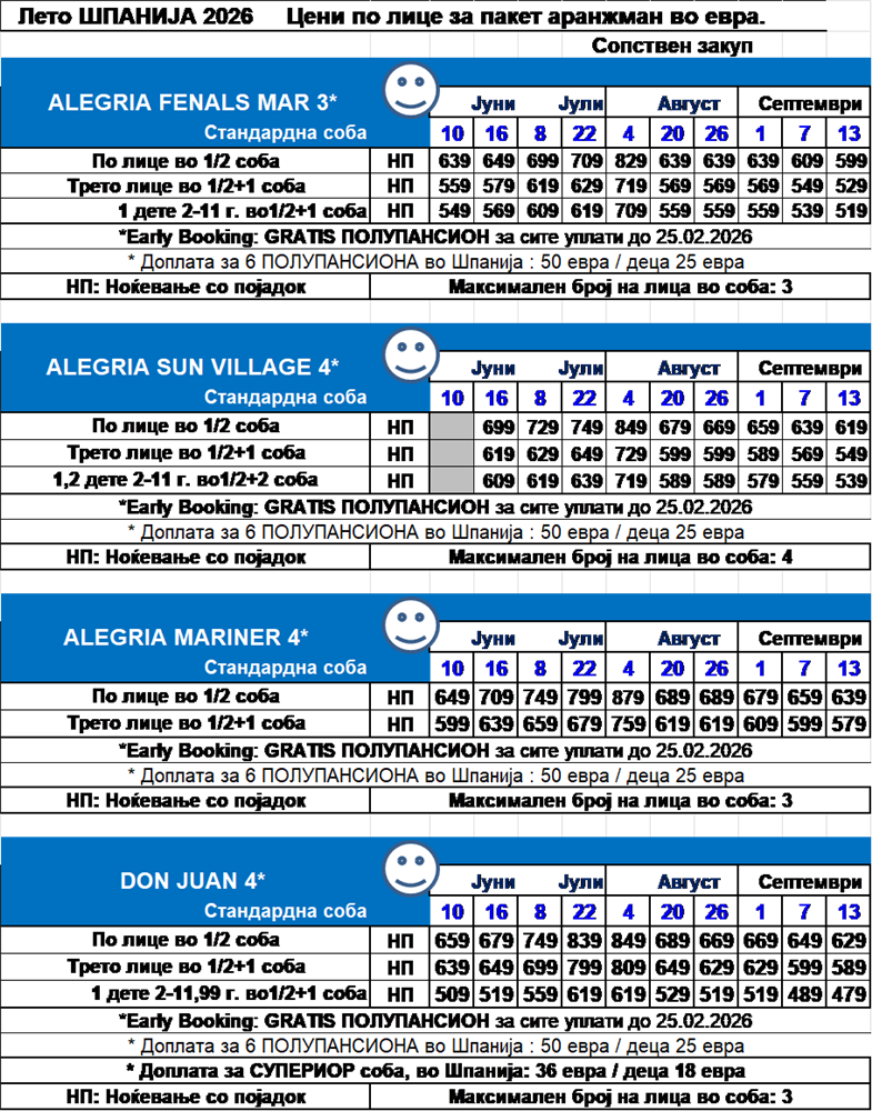 ЦЕНА за уплата до 25 Февруари 2026 + ГРАТИСПОЛУПАНСИОН ВО ШПАНИЈА